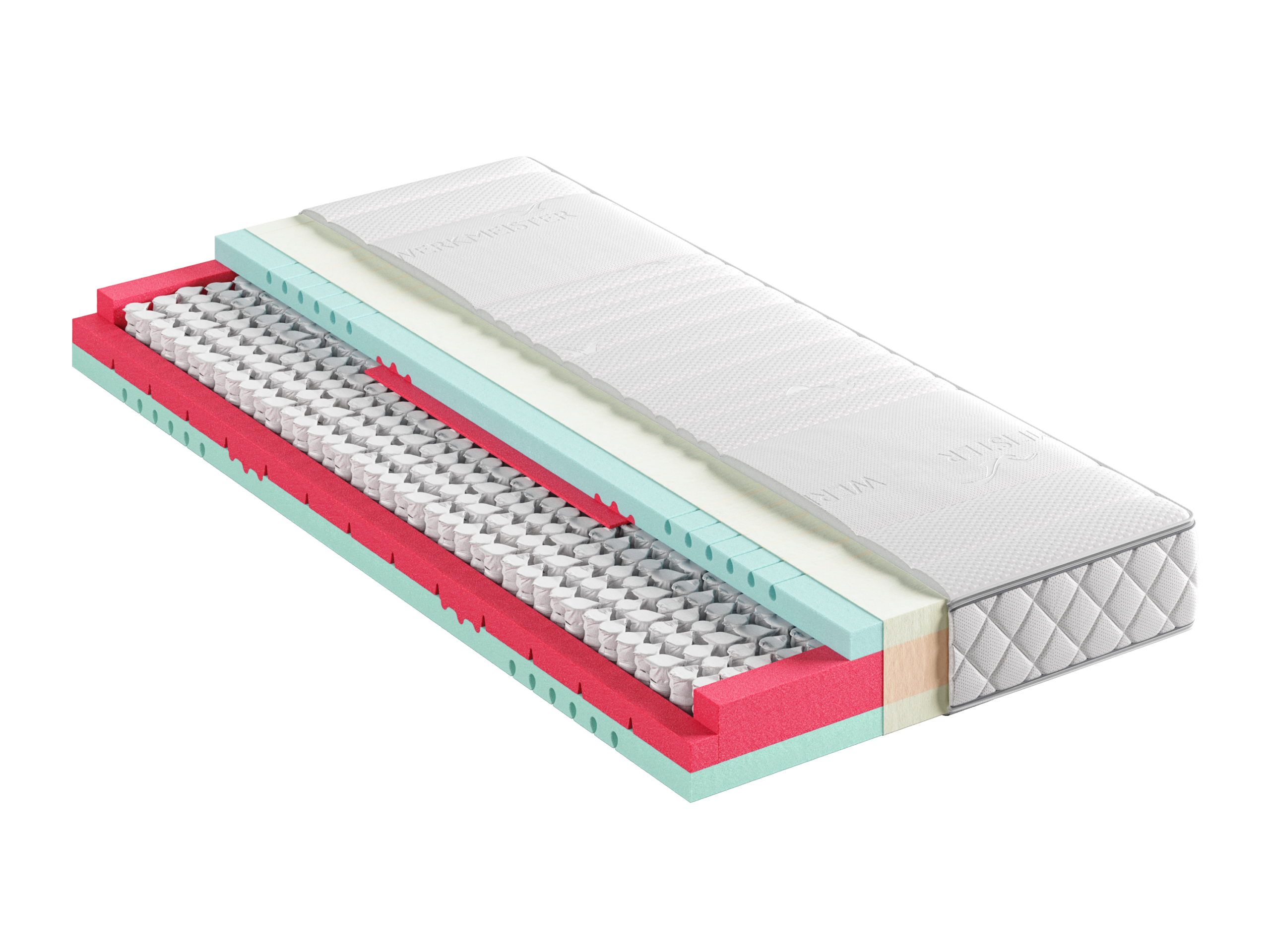 Bei WERKMEISTER kombinieren wir den Federkern mit einer speziellen Funktionsplatte aus unserem Nautiflex-Schaum, aus Premium-Pur-Komfortschaum oder aus Talalay-Latex. Du hast zudem die Wahl zwischen bauchigem Tonnentaschenfederkern, klassische Taschenfederkern oder innovativem Federkorbkern. Das Ergebnis: individueller, optimaler Schlafkomfort.